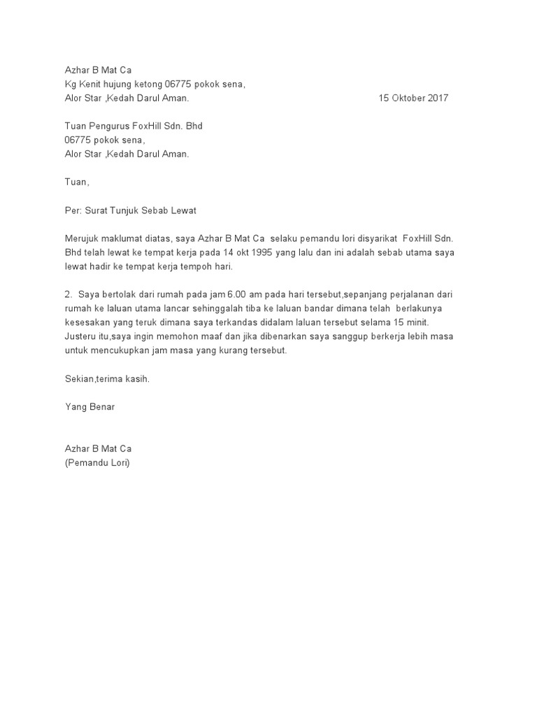 Contoh surat tunjuk sebab lewat datang kerja. Maybe you would like to learn more about one of these? We did not find results for: Check spelling or type a new query.